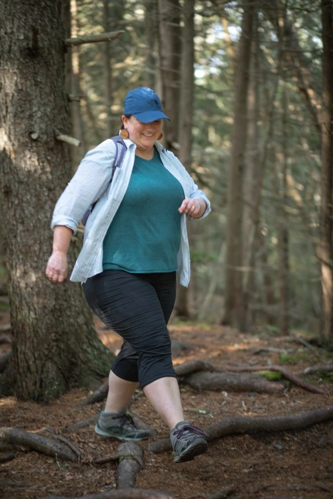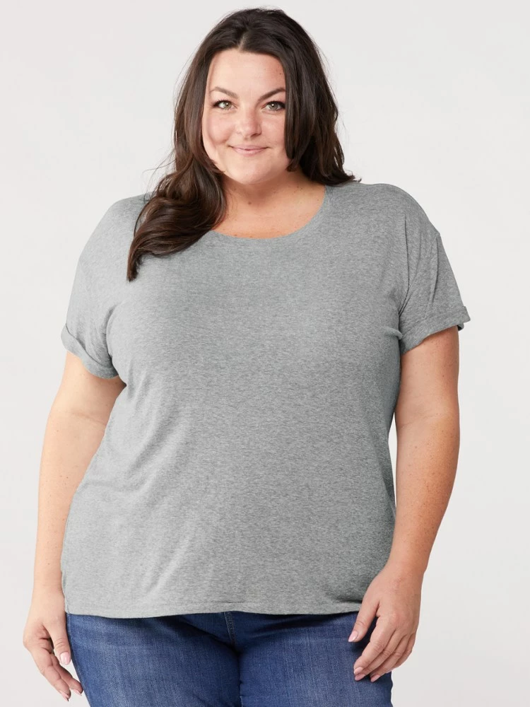 There’s no need to keep 2 separate wardrobes for yoga and play with the women’s plus-size prAna Cozy Up T-shirt that boasts natural odor-reducing features and UPF 30+ sun protection.