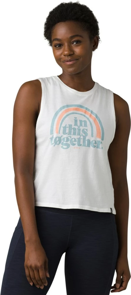 With a fun graphic and sun’s-out styling, this women’s prAna Organic Graphic Sleeveless tank top is ready to hit the beach, loop the park or log some miles in nice weather.